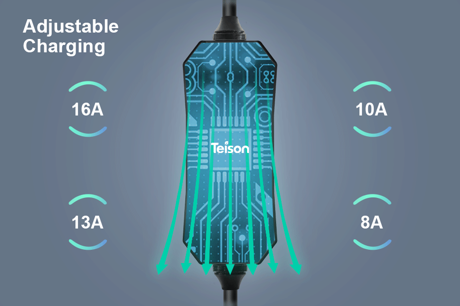 Das tragbare EV-Ladegerät von Teison ist eine praktische Plug-and-Play-Möglichkeit, Ihr Elektroauto mit Strom zu versorgen.